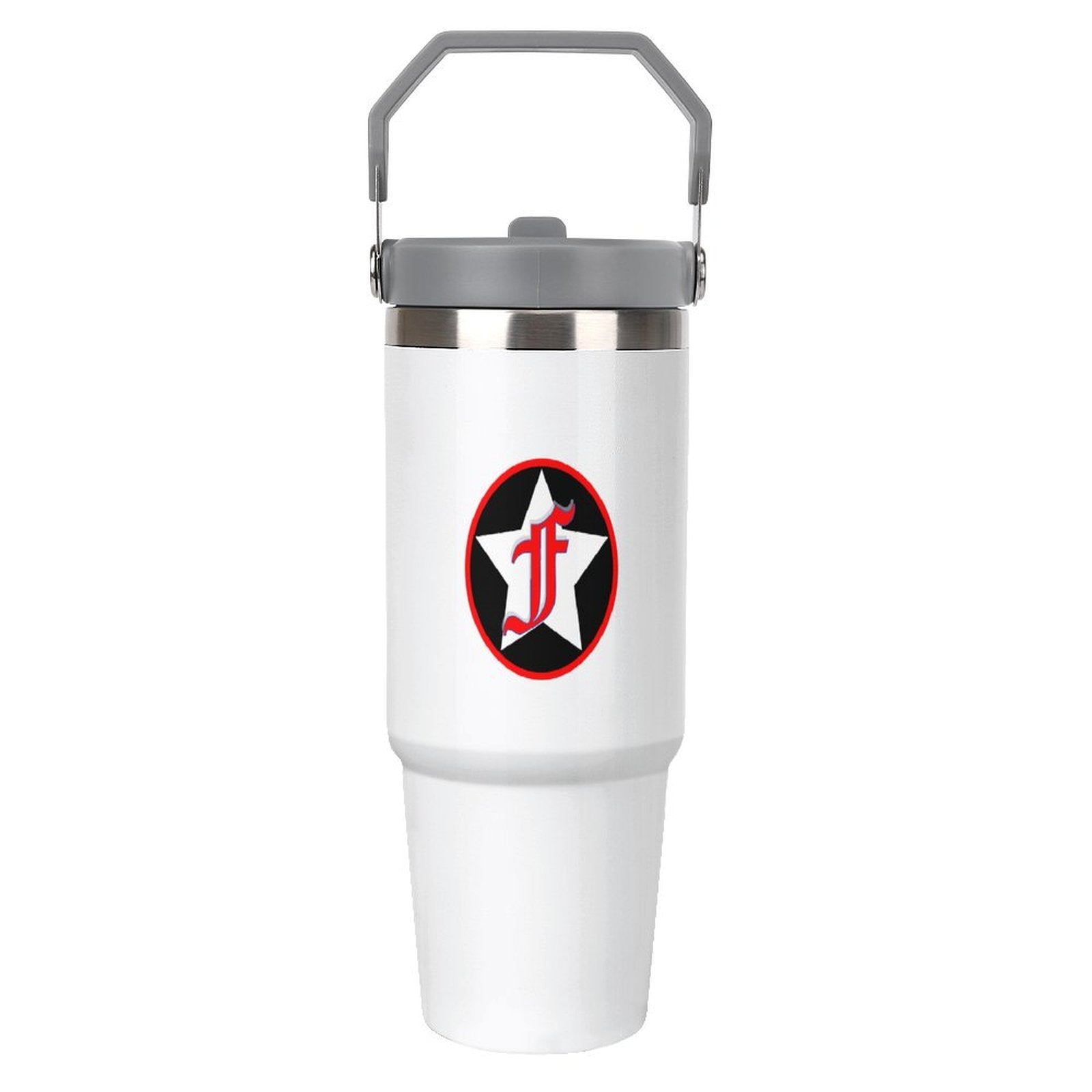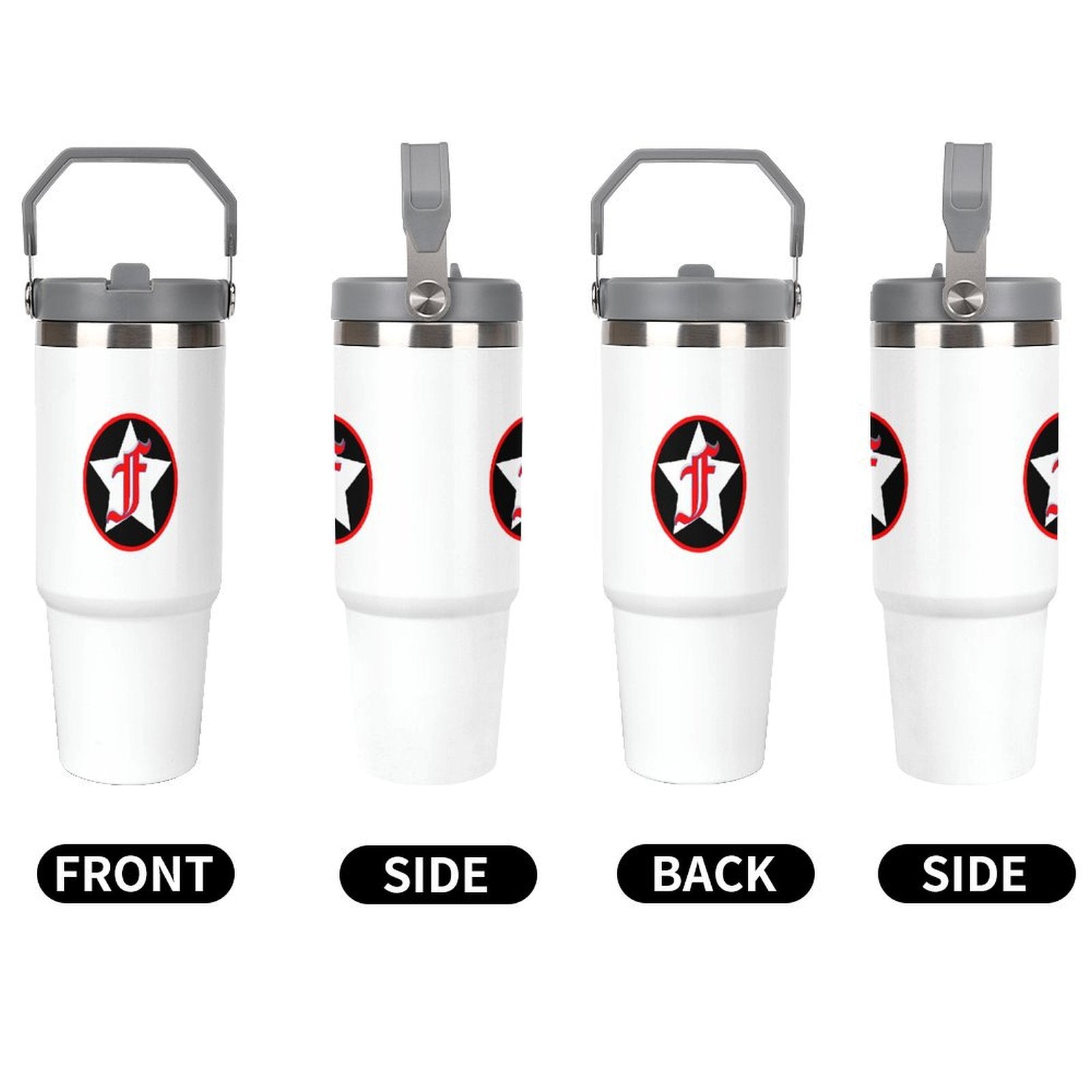 • Size: Height: 8.7″ (22 cm); Upper diameter: 3.5″ (9cm);Bottom diameter: 2.8″ (7 cm); Comes with a plastic straw and screw-on lid; Capacity: 30 OZ.
