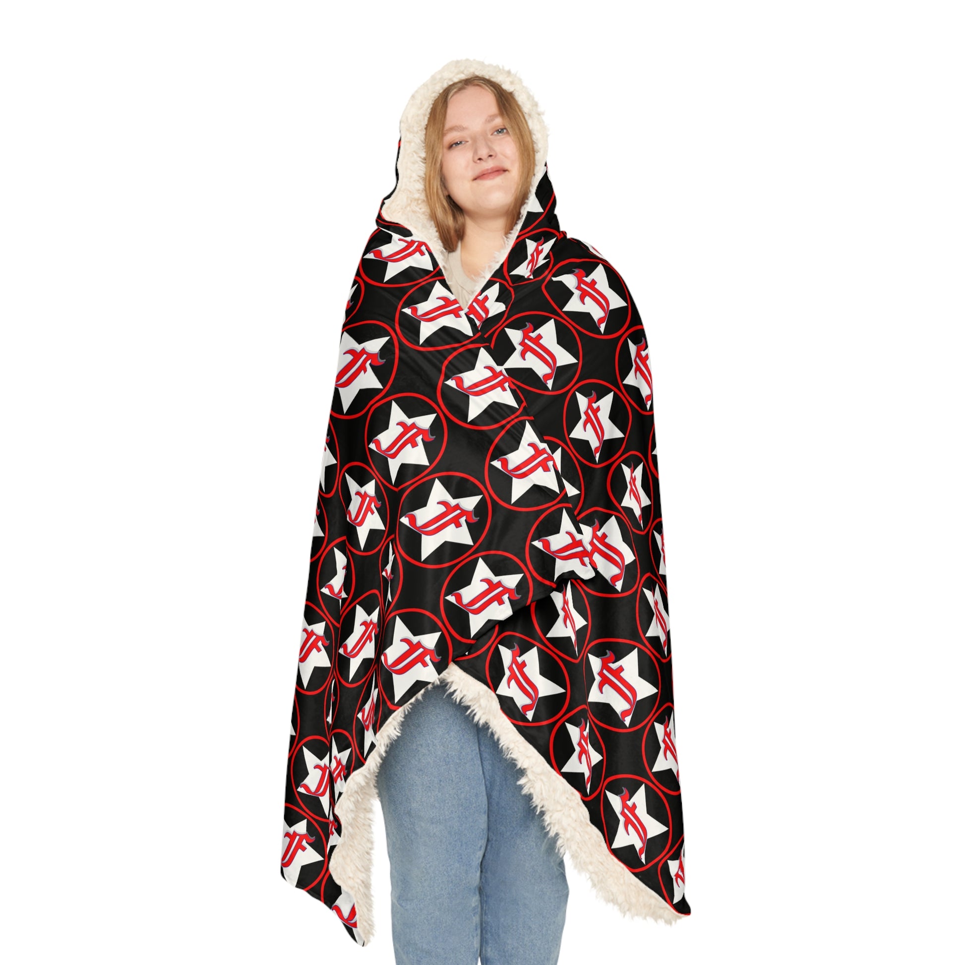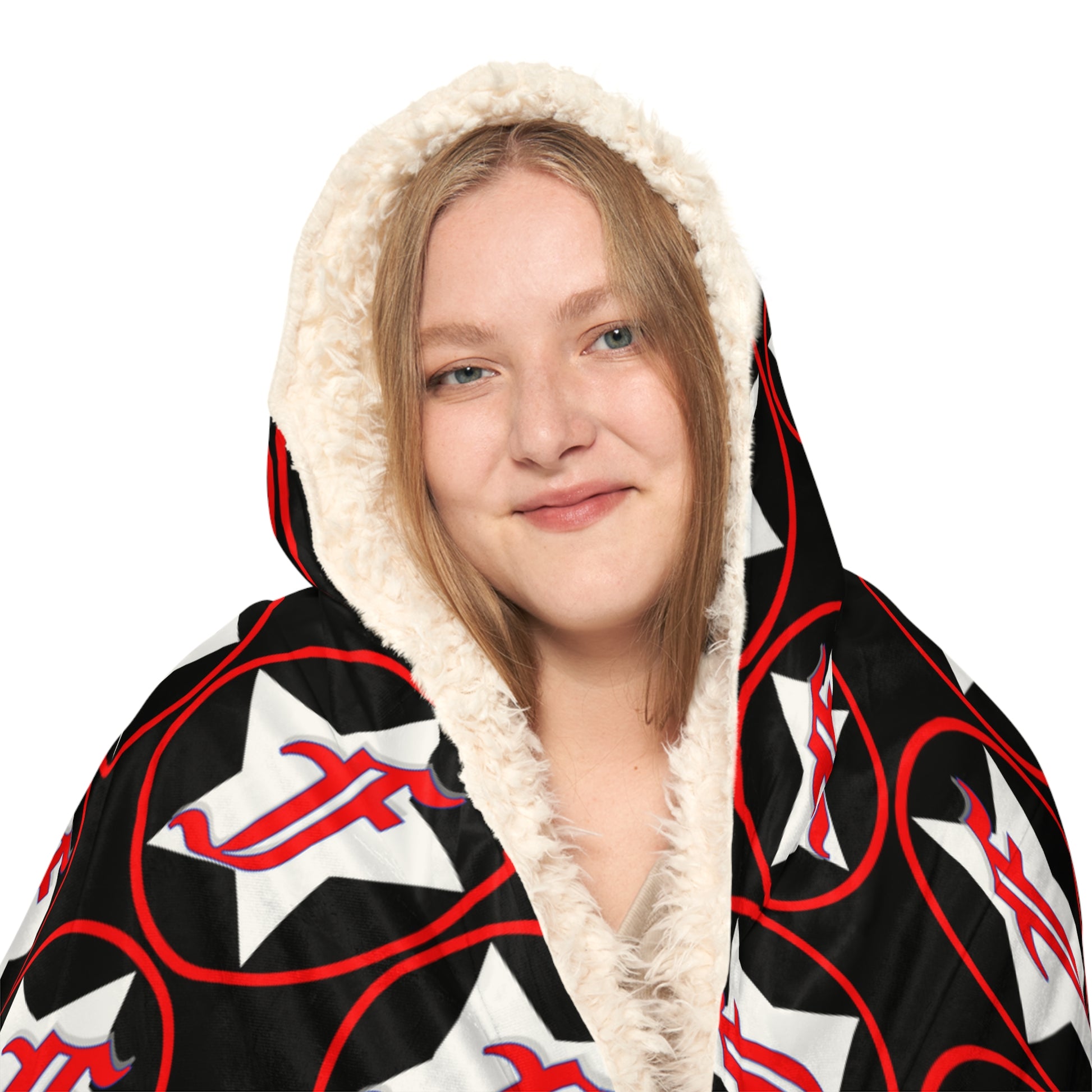 There's no need to get out of bed when you can wear a blanket all day. These incredibly comfy and soft hooded blankets are the perfect choice for cozy days at home. The 100% polyester fabric ensures durability through regular wear. We'll print your original designs onto the front of the blanket in vibrant colors and high resolution. Choose between the two inner lining options – microfleece or sherpa.